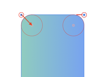 いずれか一方の頂点の上にカーソルをあわせ、カーソルに円弧がついている状態になったら、図形の内側に向かって点をドラッグします。
